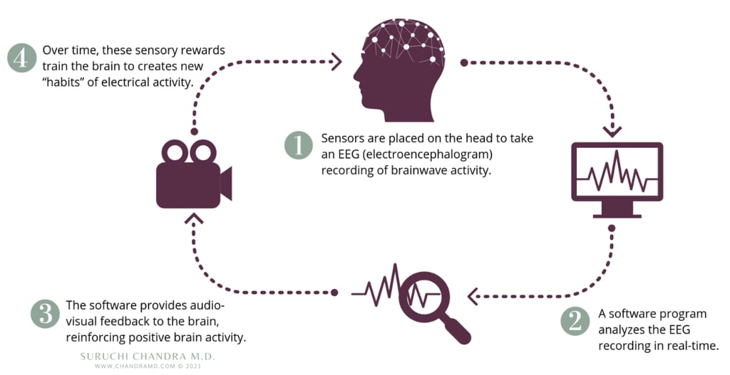 Neurofeedback is a non-invasive, evidence-based brain training method that helps regulate and optimize brainwave activity. By providing real-time feedback about your brain’s electrical patterns, neurofeedback teaches your brain to shift away from dysregulated activity and move toward healthier, more efficient functioning.
