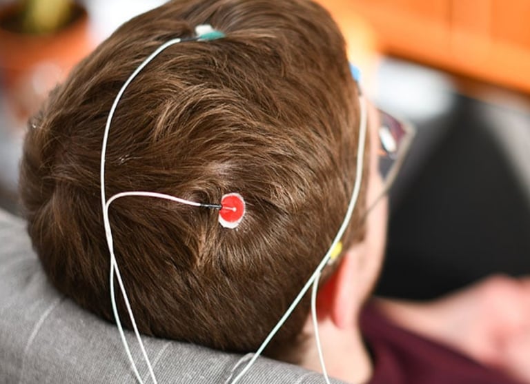 During a neurofeedback session, sensors are placed gently on your scalp to monitor your brainwave activity.